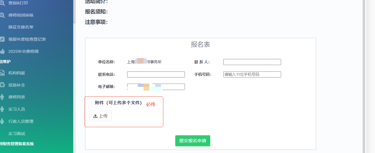 基本信息:姓名、所屬律所、會(huì)員身份、聯(lián)系方式、身份證號(hào);