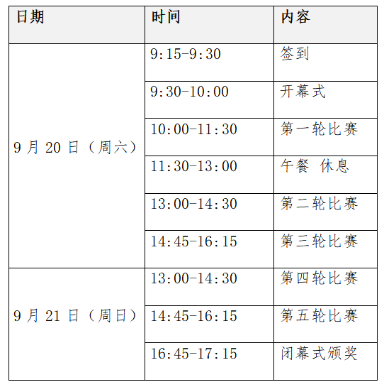 4.請參賽選手提前5分鐘到達(dá)比賽場地進(jìn)行簽到和準(zhǔn)備,每輪比賽遲到15分鐘視為該輪比賽棄權(quán)作負(fù),棄權(quán)兩輪以上者視為退賽;