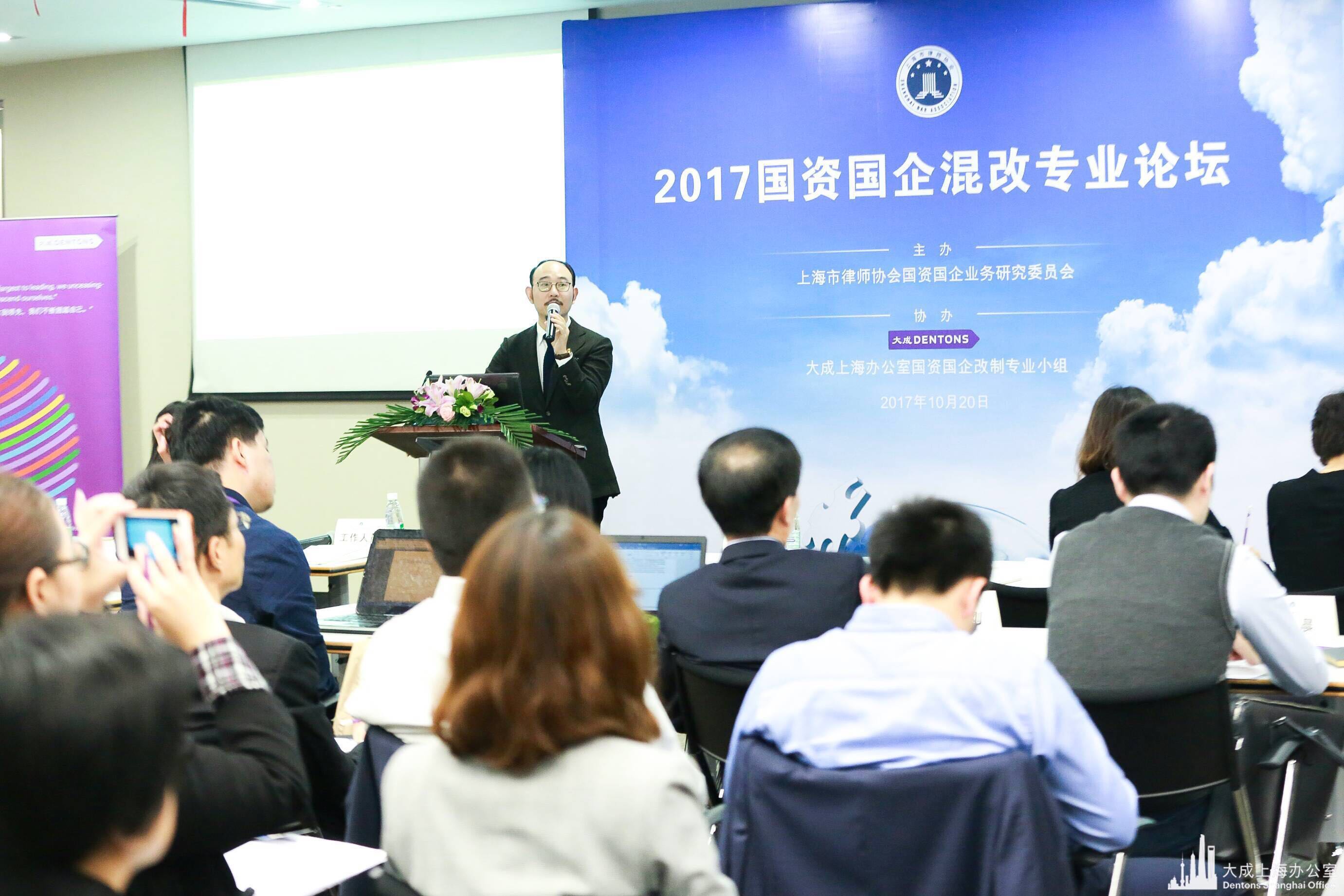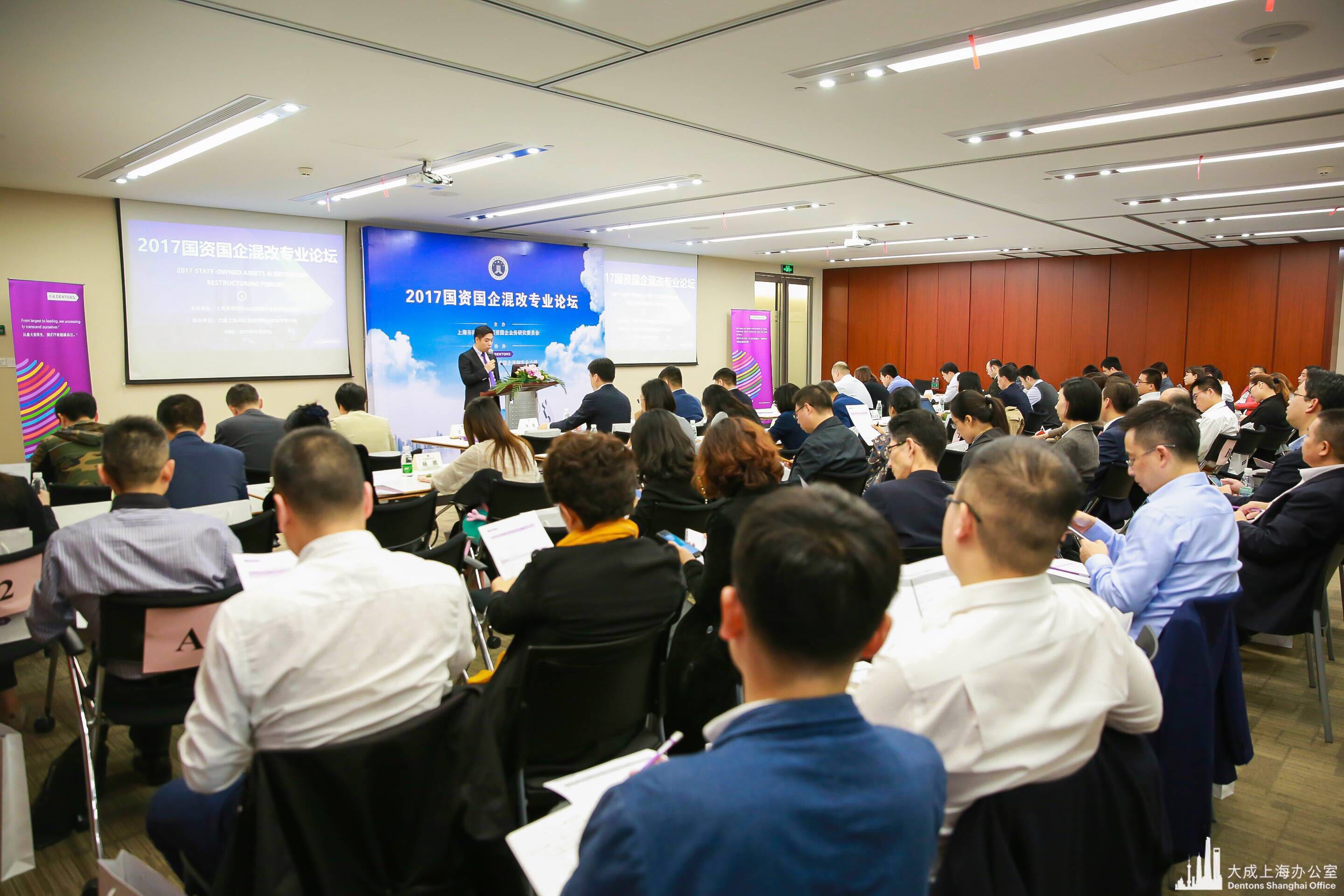 2017年10月21日下午,市律協(xié)國(guó)資國(guó)企業(yè)務(wù)研究委員會(huì)在大成(上海)律師事務(wù)所會(huì)議室舉辦 “2017國(guó)資國(guó)企混改企業(yè)專業(yè)論壇”。上海市國(guó)資委政策法規(guī)處處長(zhǎng)鐘可慰、上海聯(lián)合產(chǎn)權(quán)交易所多名領(lǐng)導(dǎo)、滬上多家國(guó)企高管、市律協(xié)國(guó)資國(guó)企業(yè)務(wù)研究委員會(huì)主任洪亮律師、副主任徐宇舟律師、丁國(guó)利律師、王棟律師及多位委員近100人參加了論壇。論壇由市律協(xié)國(guó)資國(guó)企業(yè)務(wù)研究委員會(huì)副主任王棟律師主持。